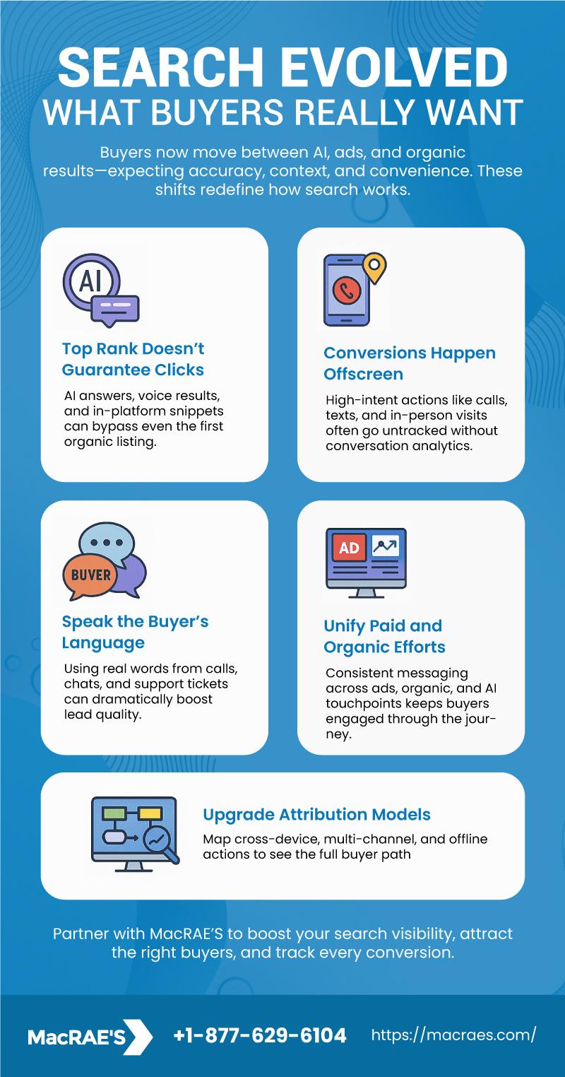 Buyers now move between AI, ads, and organic results—expecting accuracy, context, and convenience. These shifts redefine how search works.