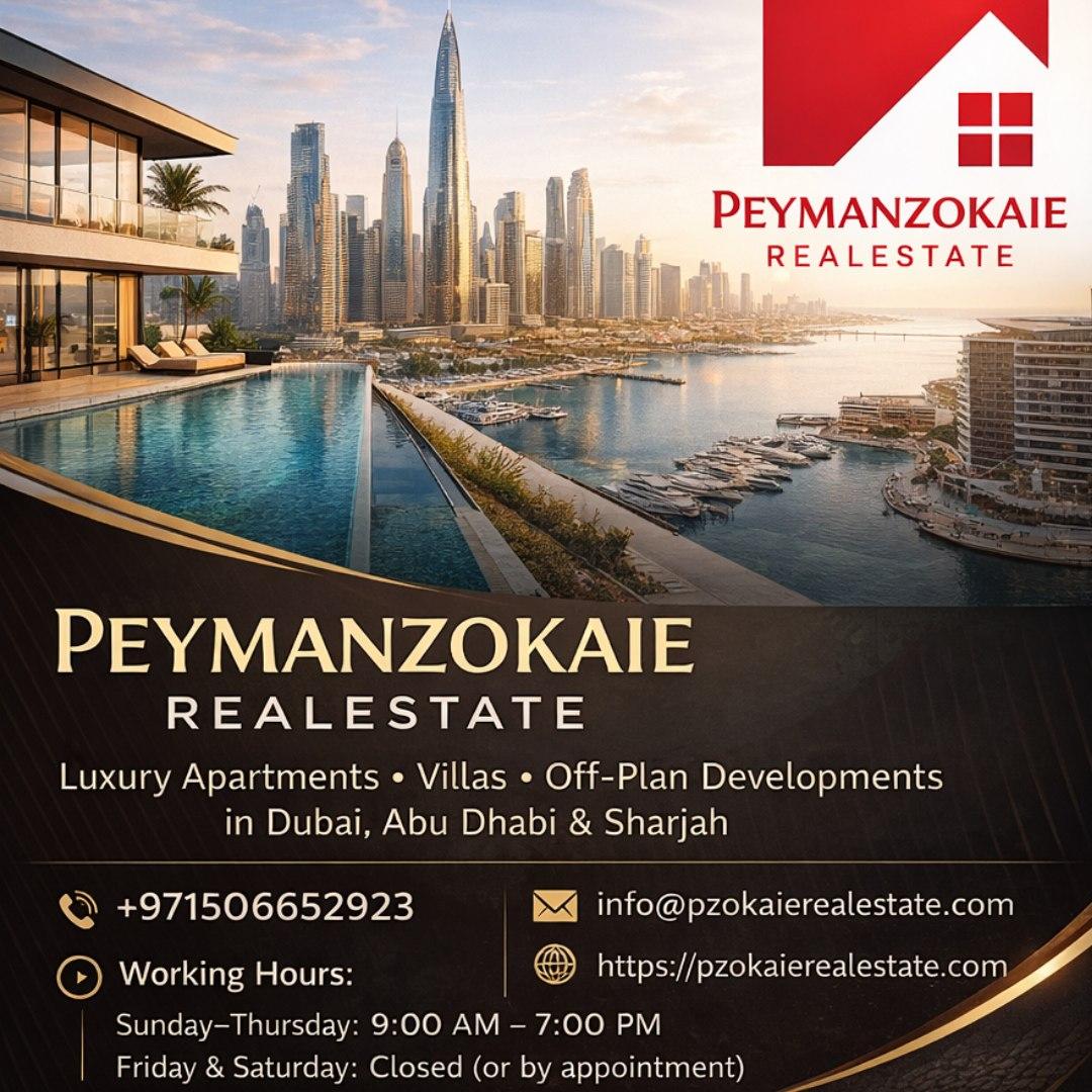 Pzokaie Real Estate is a trusted UAE property brokerage specializing in luxury apartments, villas, and off-plan developments in Dubai, Abu Dhabi, and Sharjah. With expert advisors, verified listings, and personalized support for buying, selling, and renting, we deliver professional guidance and tailored solutions. Committed to transparency and exceptional service for local and international clients.