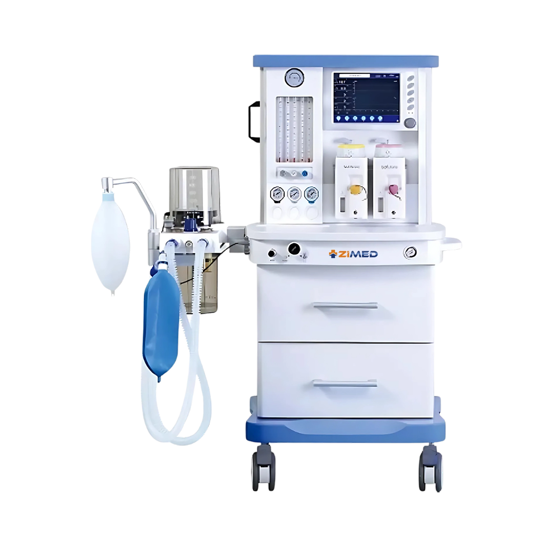 Zimed Anesthesia Machine ensures safe gas delivery with O₂, N₂O, and air up to 15 L/min. It is designed for both pediatric and adult patients with preset functions and multiple ventilation modes. A large display and optional ACGO provide efficient operation and reliable monitoring.