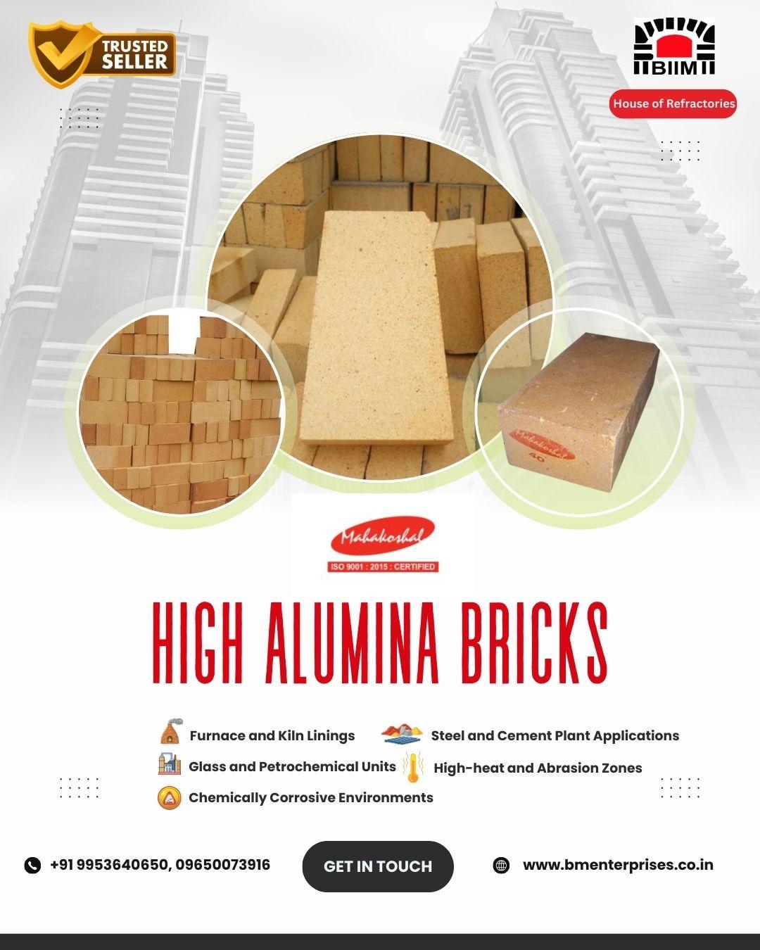 • BM Enterprises is a reliable, premium-quality high alumina brick supplier in India, offering durable and high-performance refractory solutions for demanding industrial applications. Our high alumina bricks are manufactured using premium raw materials to provide excellent heat resistance, high mechanical strength, and superior thermal stability.