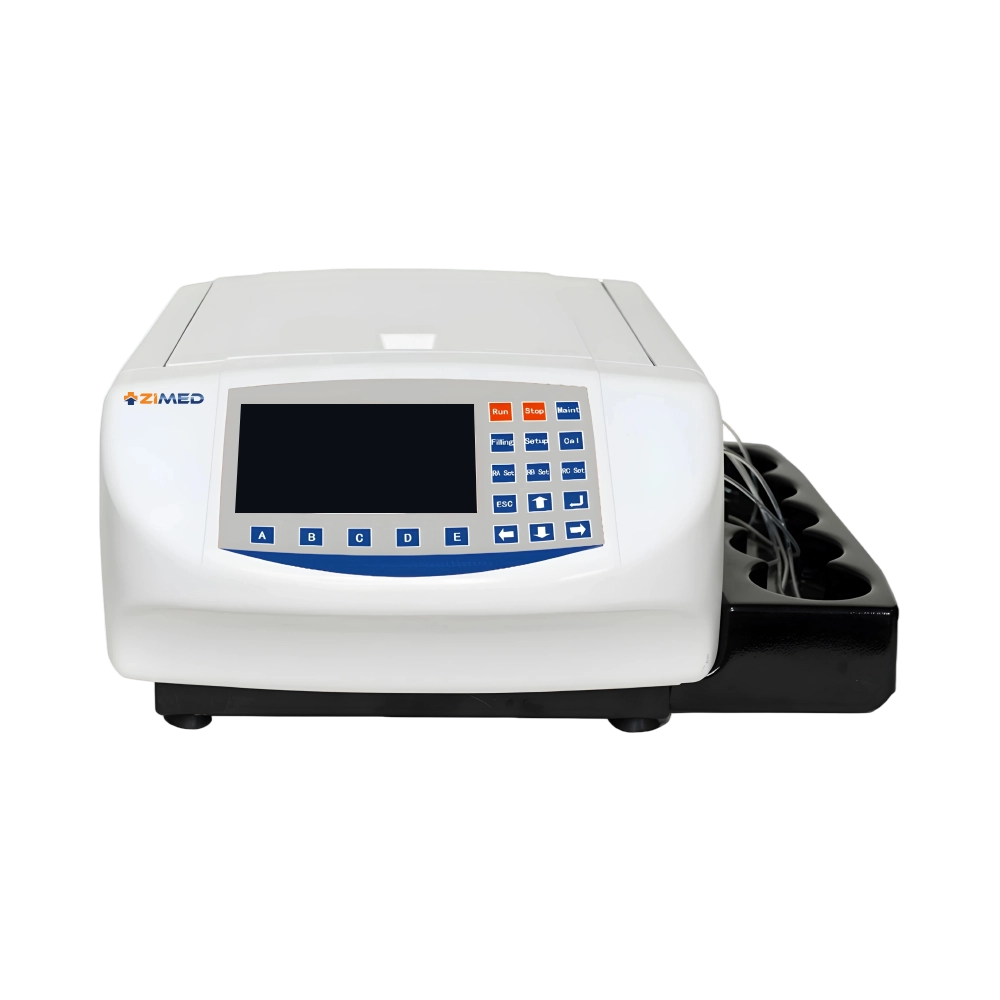 Zimed Single Automated Gram Stainer ensures fast, consistent staining with automatic reagent dosage and standard dye solutions. It features fully automated operation with centrifugation for drying and flexible dyeing modes. A 7-inch touchscreen enables customizable settings and high-capacity slide processing.