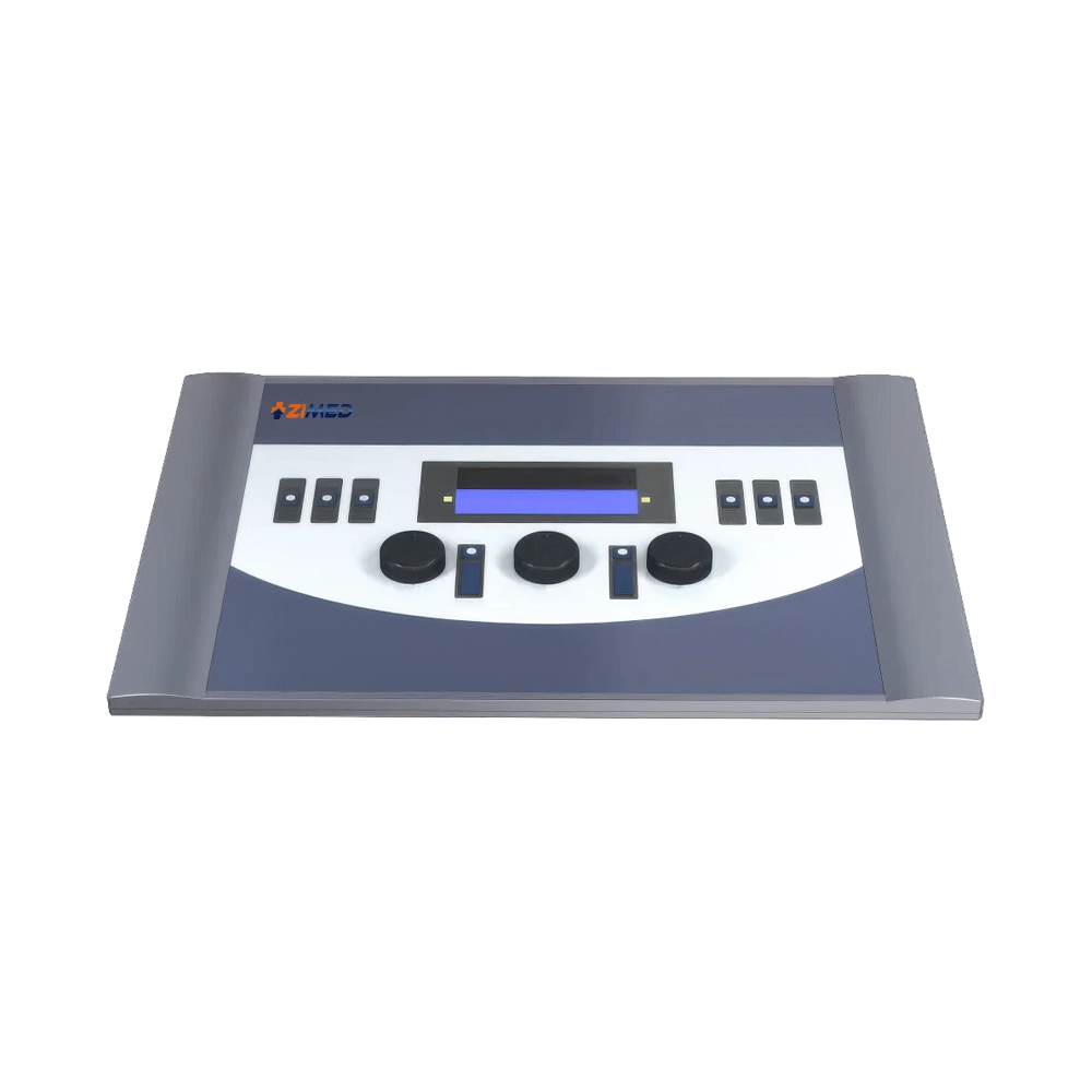 Zimed Audiometer offers wide frequency coverage with test intensity from -10 to 120 dB air and -10 to 70 dB bone. Dual independent output channels, fine attenuation control, and low distortion ensure accurate results. A high-resolution LCD, multilingual interface, and compact design add ease of use.