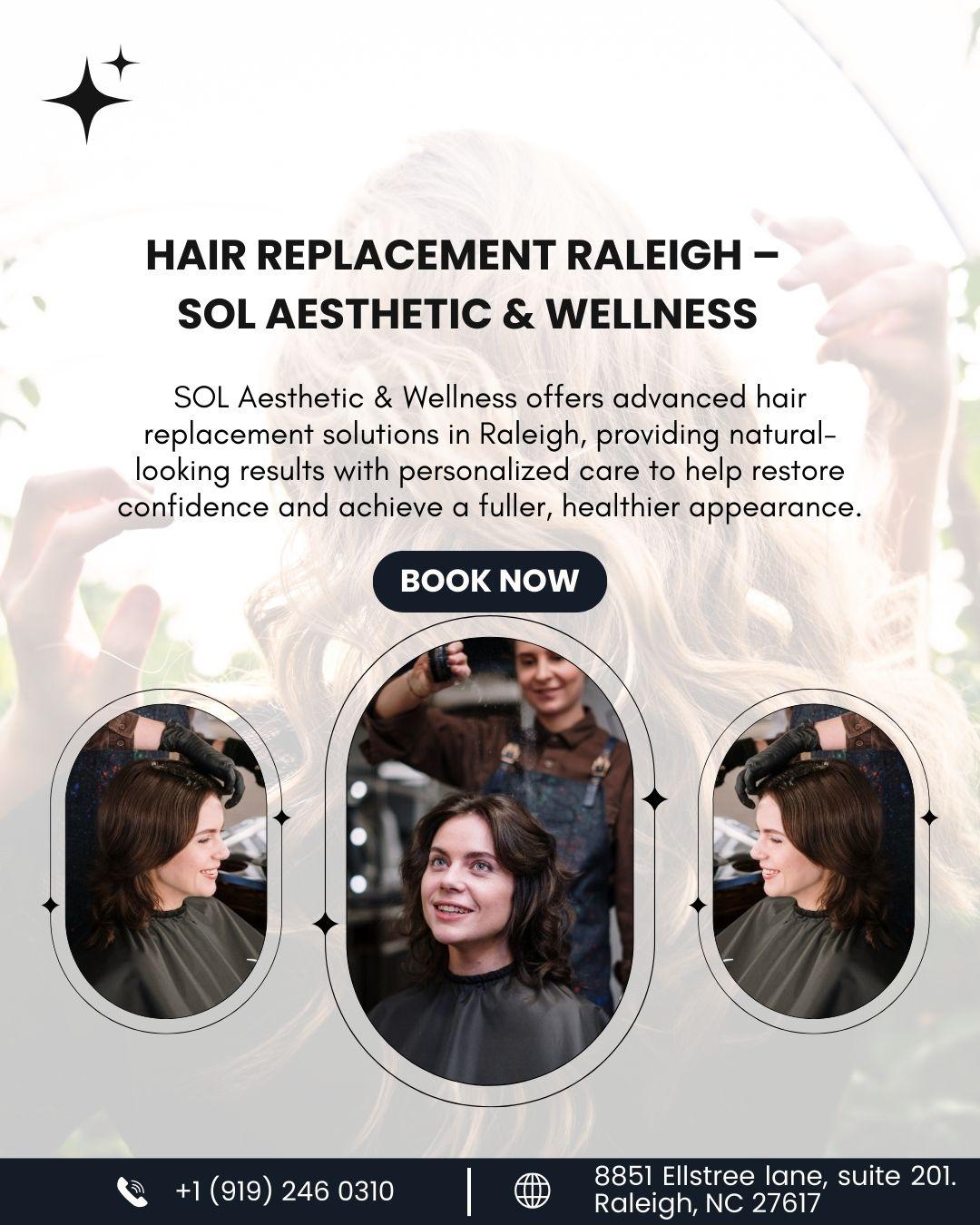 Hair Replacement Raleigh – SOL Aesthetic & Wellness SOL Aesthetic & Wellness offers advanced hair replacement solutions in Raleigh, providing natural-looking results with personalized care to help restore confidence and achieve a fuller, healthier appearance. Visit: https://solaestheticsnc.com/service/hair-restoration/