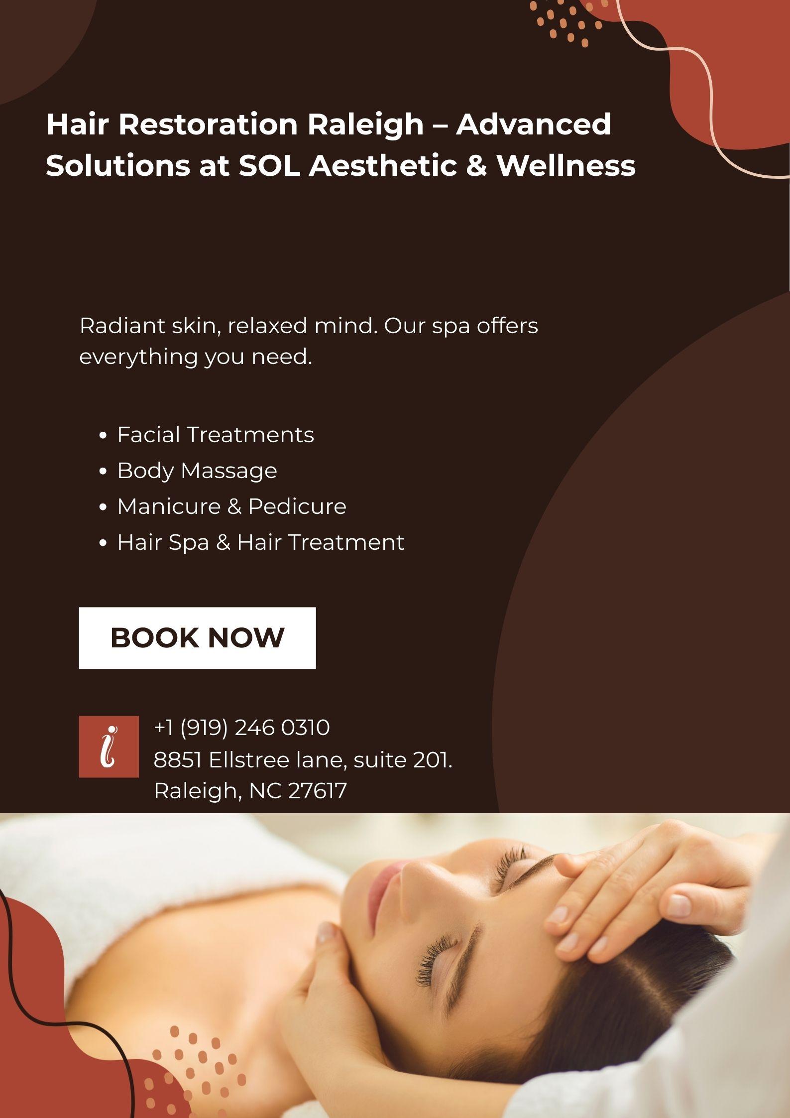 Hair Restoration Raleigh – Advanced Solutions at SOL Aesthetic & Wellness Discover expert hair restoration in Raleigh at SOL Aesthetic & Wellness, offering advanced, non-surgical treatments designed to restore hair growth, confidence, and natural results. Visit: https://solaestheticsnc.com/service/hair-restoration/