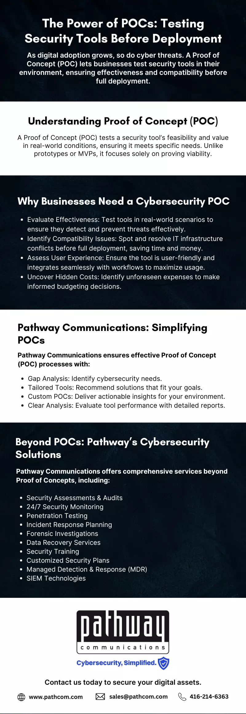 The Power of POCs: Testing Security Tools Before Deployment As digital adoption grows, so do cyber threats. A Proof of Concept (POC) lets businesses test security tools in their environment, ensuring effective cybersecurity before full deployment. #Cybersecurity_services Visit: https://www.pathcom.com/cybersecurity/cybersecurity-services