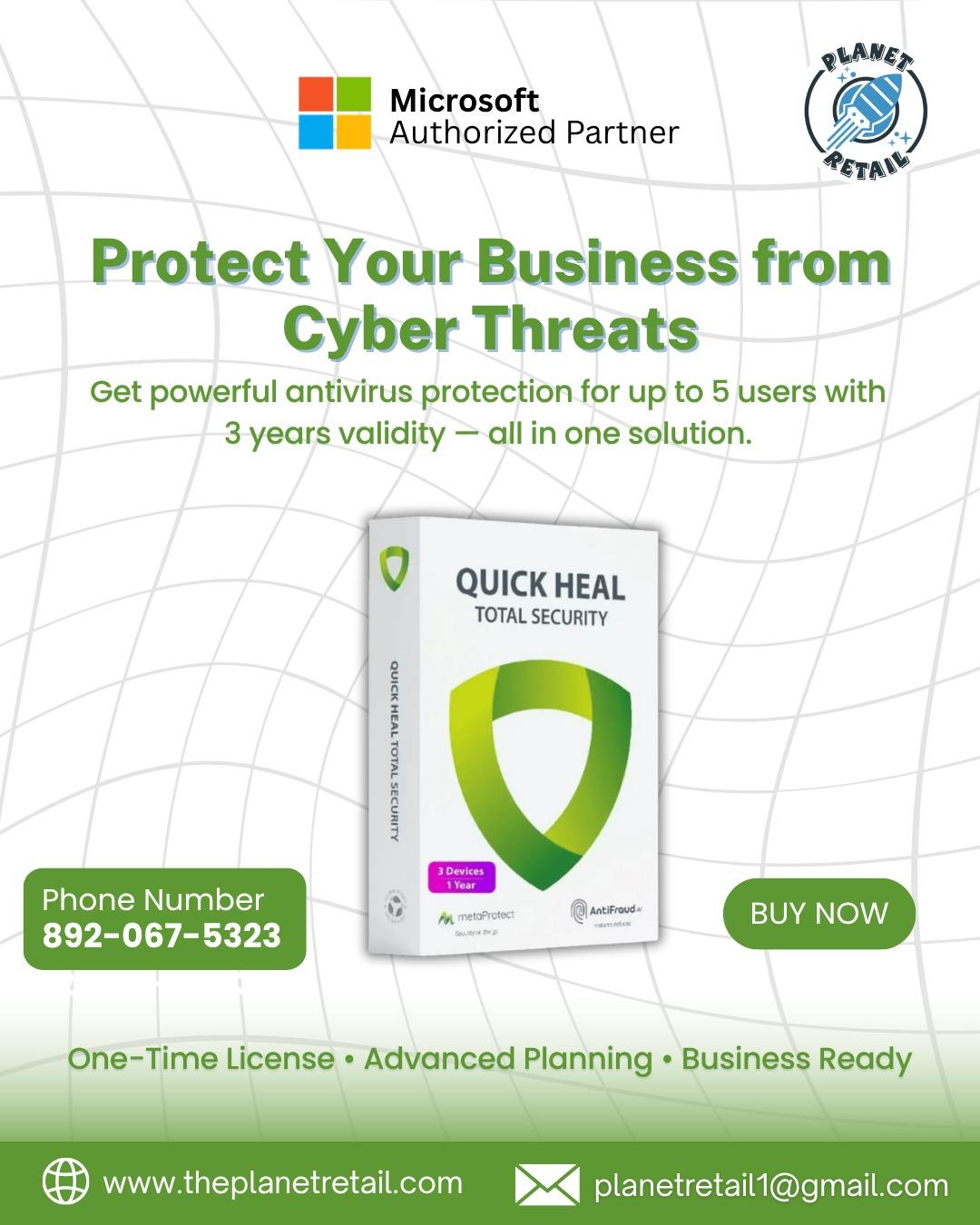 Protect your business from evolving cyber threats with reliable security solutions. As a trusted Microsoft Authorized Partner, we bring you powerful protection with Quick Heal Total Security.